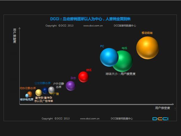 DCCI 分析認為,2013年影響互動營銷領域的關鍵要素要素是:移動(Mobile)、開放(Open)、社會化(Social)、技術(Tech)、電商(E-commerce)、數據(Data),這些要素的首寫字母聚合在一起,便是 MOSTED,便是 MOSTED2013:主流化、臨界點、人營銷。