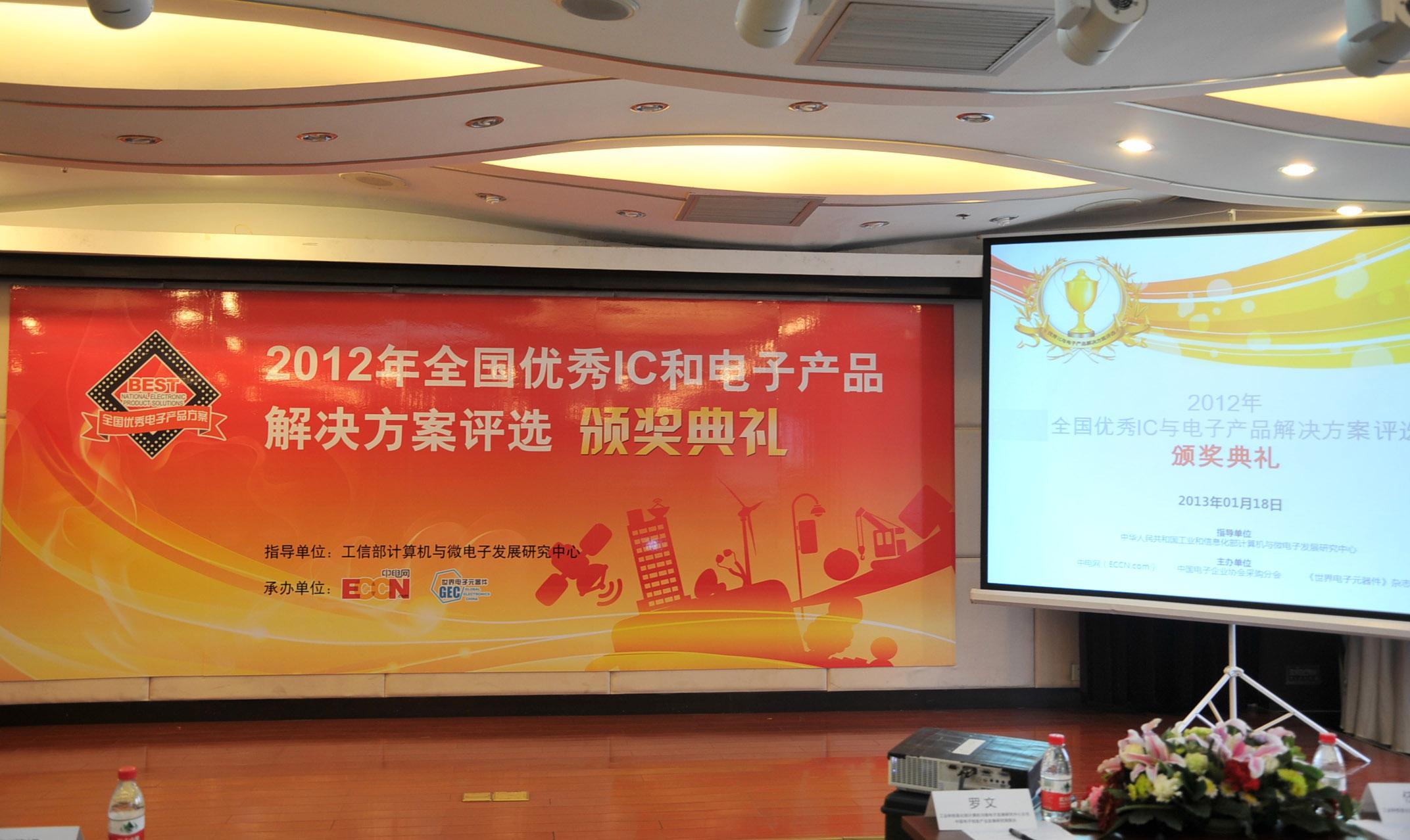 北京2013年1月22日電 /美通社/ -- 2013年1月18日,由工信部計算機與微電子發(fā)展研究中心指導(dǎo)、中電網(wǎng)(ECCN)與《世界電子元器件》雜志共同舉辦的“2012年全國優(yōu)秀 IC 和電子產(chǎn)品解決方案評選頒獎大會”在工信部計算機與微電子發(fā)展研究中心會議室隆重舉行。本次評選共有來自30個國內(nèi)外廠商的39個解決方案獲獎,工信部計算機與微電子發(fā)展研究中心主任、中國電子信息產(chǎn)業(yè)發(fā)展研究院院長羅文、工信部集成電路處處長任愛光及中電網(wǎng)總裁兼 CEO 趙蔚揚在會上發(fā)表了致辭和講話,并為獲獎廠商頒獎。