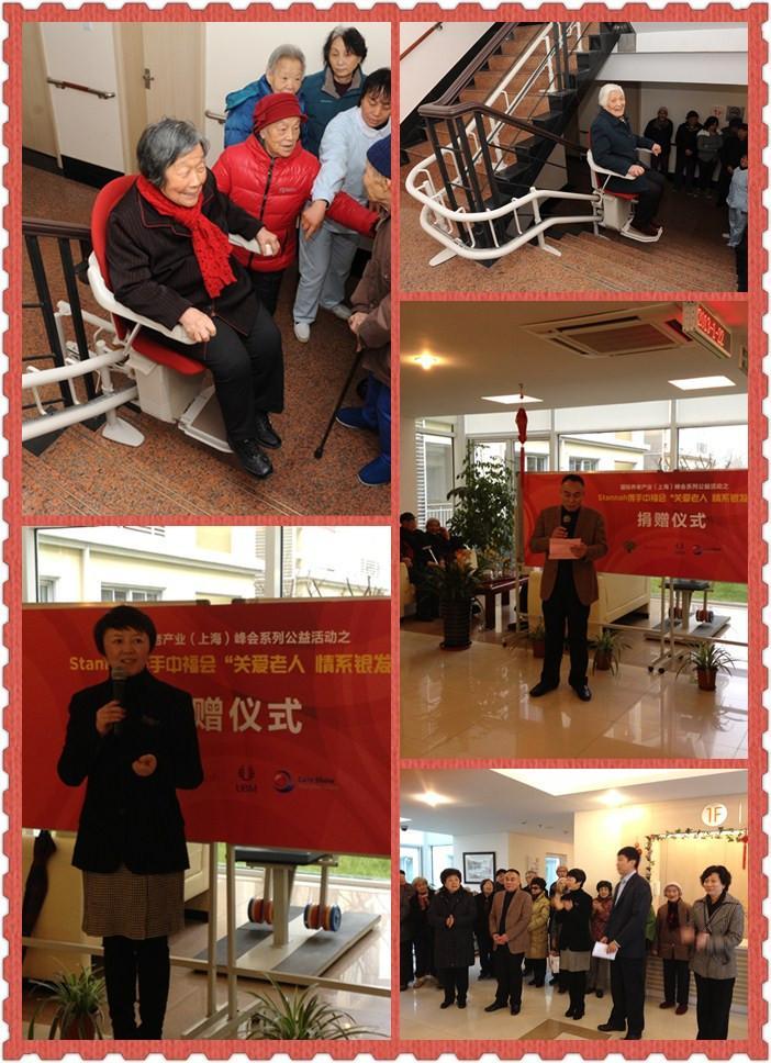 由宋慶齡基金會出資興辦的中福會養(yǎng)老院,本著“哪里急需就到哪里服務(wù)”的思想,經(jīng)過四年多的探索實踐,已經(jīng)發(fā)展成為上海代表性的養(yǎng)老機(jī)構(gòu)之一,宗旨是“把最寶貴的東西給予老人”。而作為世界上較大的座椅電梯生產(chǎn)商 -- 英國Stannah,是一家有著悠久歷史的企業(yè),一百多年來,建立起了誠實正直的聲譽(yù)和對產(chǎn)品質(zhì)量的承諾,可以說斯坦納是座椅電梯領(lǐng)域毋庸置疑的領(lǐng)導(dǎo)者。此次“關(guān)愛老人 情系銀發(fā)”捐贈活動,除了為老人日常生活提供了便捷,同時,Stannah也為中國養(yǎng)老產(chǎn)業(yè)做了一個非常值得學(xué)習(xí)的榜樣,在上海創(chuàng)建老年友好型城市的過程中發(fā)揮作用。