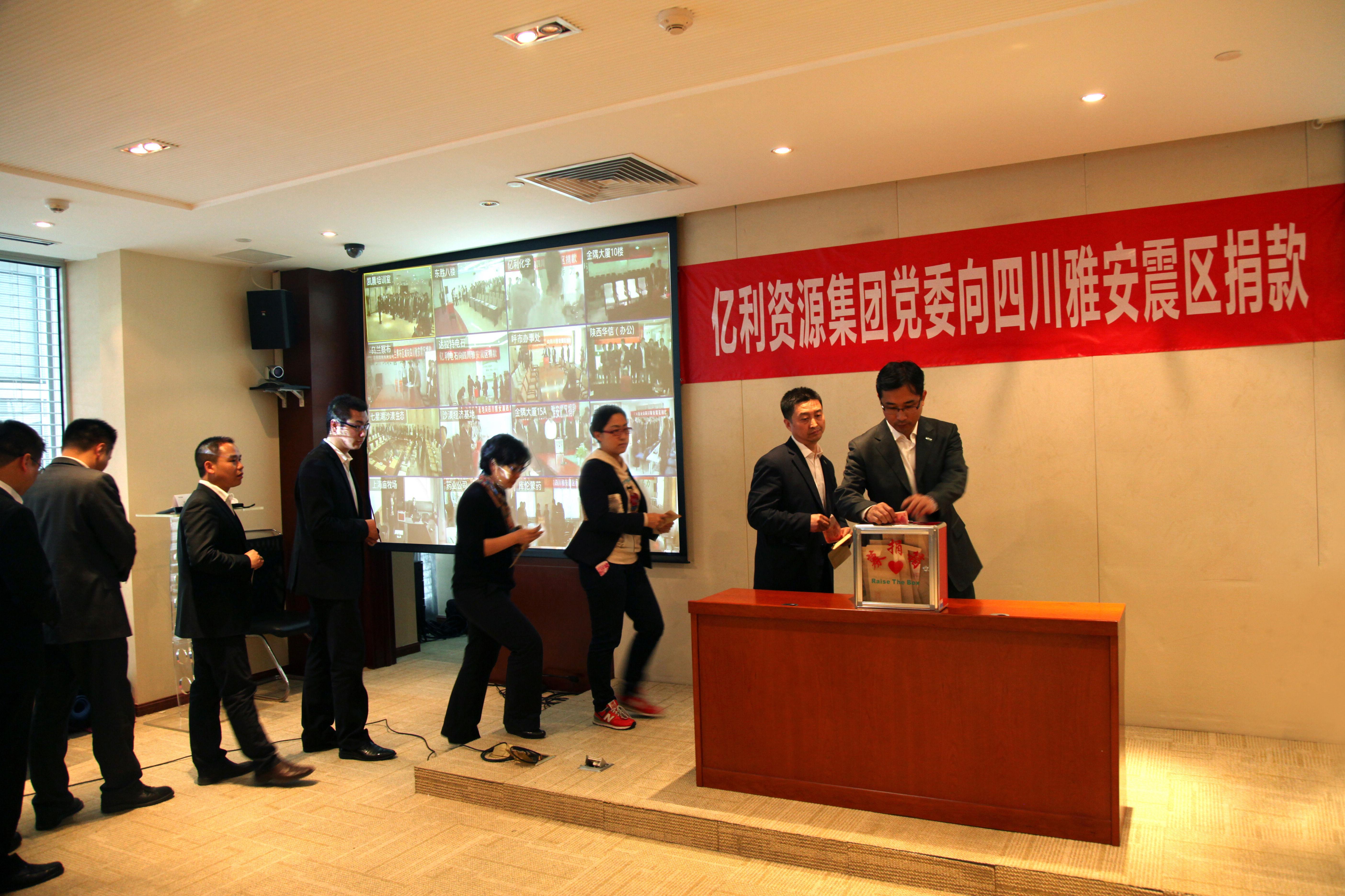 北京2013年4月28日電 /美通社/ -- 4月27日,四川省雅安蘆山發(fā)生7.0級地震后的第七天,億利資源集團黨委組織億利公益基金會、公司全體黨員干部和職工舉行向雅安地震災(zāi)區(qū)捐款活動。
