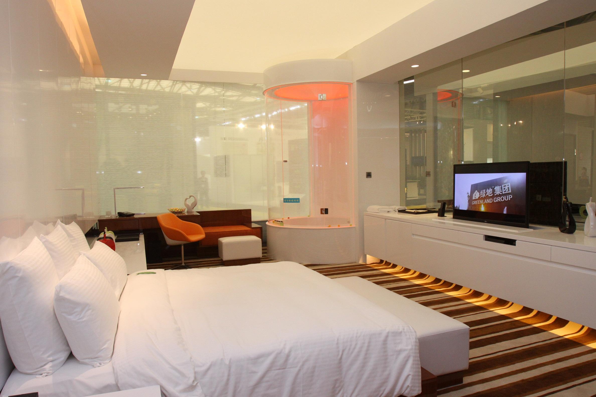 在薈萃前沿產(chǎn)品的同時,展覽會亦呈現(xiàn)豐富現(xiàn)場活動,引領(lǐng)業(yè)界新潮流。其中,“Hotel Plus酒店樣板房品鑒”活動邀請到了洲際、萬達(dá)、綠地、開元、欣燕都等國際國內(nèi)酒店管理集團(tuán)以及意大利酒店設(shè)計(jì)專家Well Tech Studio聯(lián)合組成豪華設(shè)計(jì)團(tuán)隊(duì),現(xiàn)場打造六套獨(dú)具特色的精品酒店樣板客房,展示總面積近1000平方米。本次樣板客房所用建材及裝飾材料來自曼佳美、HAFELE、羅格朗、源志誠、開利、諾貝爾、亞地斯、CATALAND、FANTINI等業(yè)內(nèi)領(lǐng)軍品牌的最新產(chǎn)品,均為注重減少自然資源消耗及有害物質(zhì)排放的環(huán)保材料,即融合新概念設(shè)計(jì),又運(yùn)用了綠色節(jié)能新材料和現(xiàn)代裝飾藝術(shù),為星級酒店提供室內(nèi)設(shè)計(jì)案例參考及工程整體解決方案。