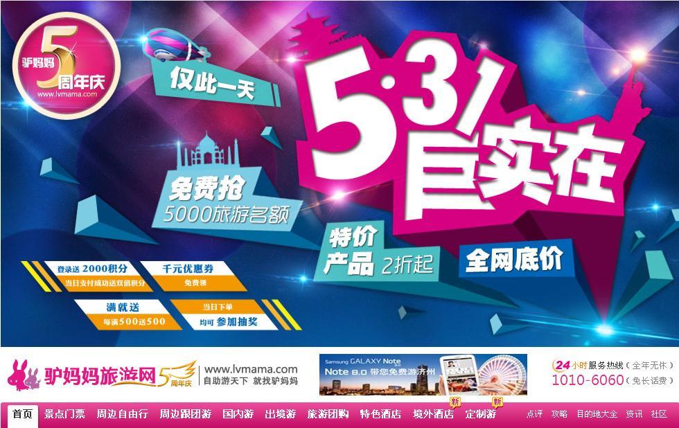 而且,驢媽媽這次在5周年店慶促銷時間選擇上,也頗費心思。5月31日這個節(jié)點,恰好正逢6月旅游消費的小淡季,同時又趕在迎接暑期旅游高峰前,此時進行整合營銷造成規(guī)模效應(yīng),這對淡季促銷和暑期預(yù)熱起到雙重作用,對消費者來說也能得到實際優(yōu)惠。