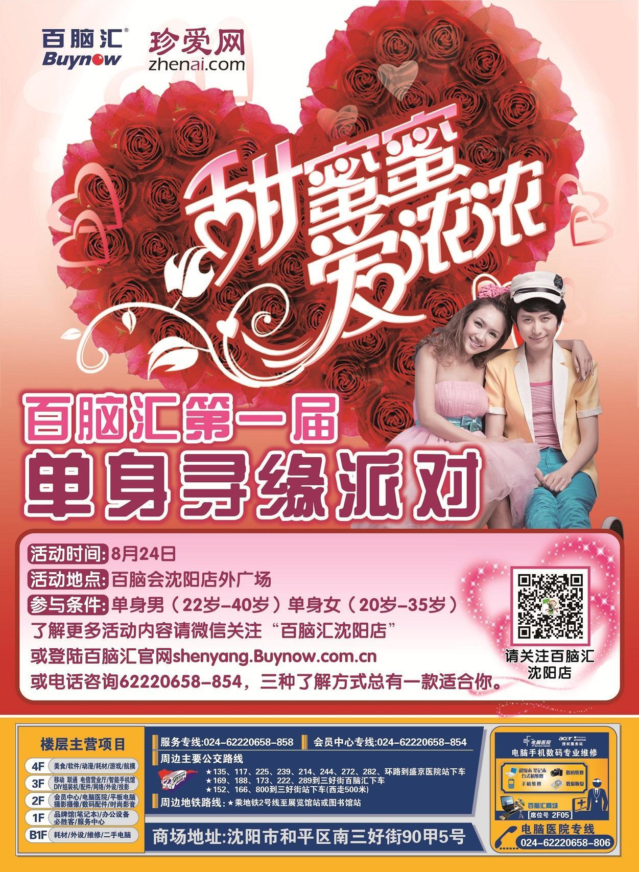 沈陽2013年8月21日電 /美通社/ -- 夏日戀愛正當(dāng)時,什么?你還沒有對象可戀、沒有情感可托?那可不要錯過這個免費的“脫光”機會。8月24日,珍愛網(wǎng)單身尋緣派對登陸沈陽百腦匯,近千名優(yōu)質(zhì)單身男女與你相約“甜蜜蜜,愛濃濃”百腦匯第一屆單身尋緣派對,更有多款精美禮品參與就送。