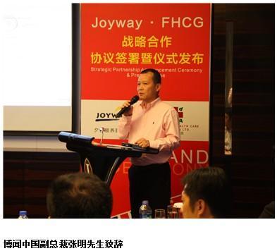 最后Care Show峰會主辦方博聞中國副總裁張明先生也發(fā)表祝賀,對雙方在Care Show平臺上結緣頗有感觸,作為全球規(guī)模較大養(yǎng)老產(chǎn)業(yè)峰會論壇Care Show,今年連續(xù)第二年來到中國,在上海舉辦,一直致力于推動國外先進養(yǎng)老服務理念融入中國,促進中外企業(yè)積極互動與多邊合作,可以說此次夕悅頤養(yǎng)與FHCG的合作是偶然更是必然。值得一提的是,本次簽約雙方上海夕悅頤養(yǎng)服務機構與英國未來健康集團也將再次于8月22日至23日的2013國際養(yǎng)老產(chǎn)業(yè)(上海)峰會暨展示會Care Show 2013上亮相,雙方企業(yè)領導人將分別發(fā)表關于養(yǎng)老產(chǎn)業(yè)創(chuàng)新服務的主題演講,敬請期待!