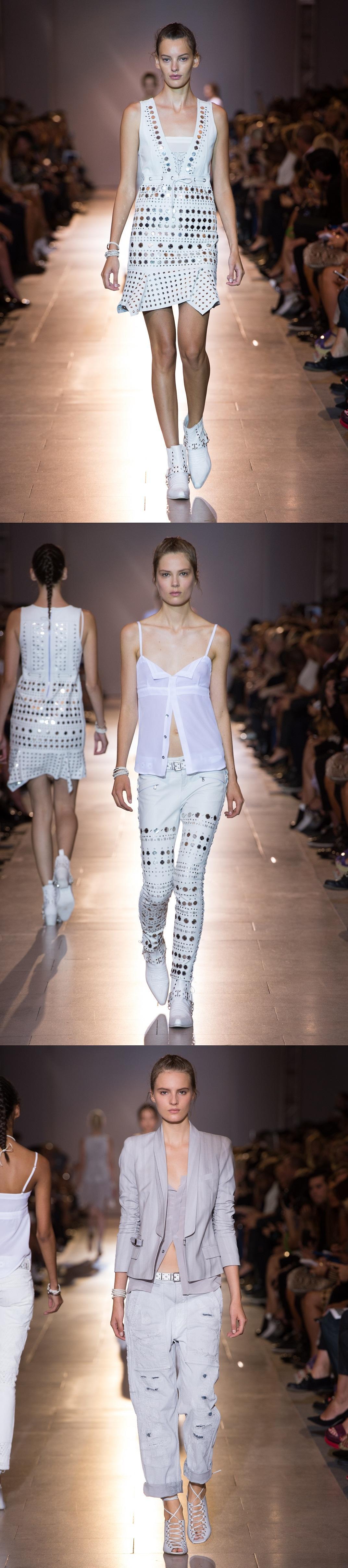 作為DIESEL BLACK GOLD創(chuàng)意總監(jiān)Andreas Melbostad為品牌推出的第二季作品,2014春夏女裝系列對品牌現(xiàn)有的主打元素進(jìn)行了延伸,并大膽引入了一種全新的柔性質(zhì)感,包括金屬扣眼、亮片、拉鏈、扣子。同時(shí),從皮革到喬其紗等一系列的單品中,其包含的硬性基調(diào)無不透露出奢華的工業(yè)元素。在本季的用料方面,設(shè)計(jì)師選用了雙縐真絲、真絲喬其紗、全棉府綢、全棉薄紗等更輕、更軟的原料,與本季春夏系列的實(shí)利主義核心 -- 皮革和牛仔形成了鮮明的對比。