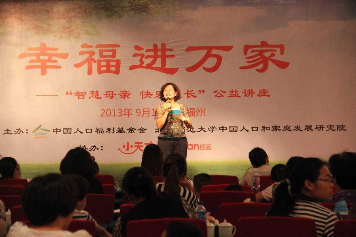 2013年9月14日,福州市外貿中心酒店碧麗殿里座無虛席,來自于各行各業(yè)的父母們聚集在到這里,共同參加“幸福進萬家 -- 智慧母親 快樂成長公益講座”。