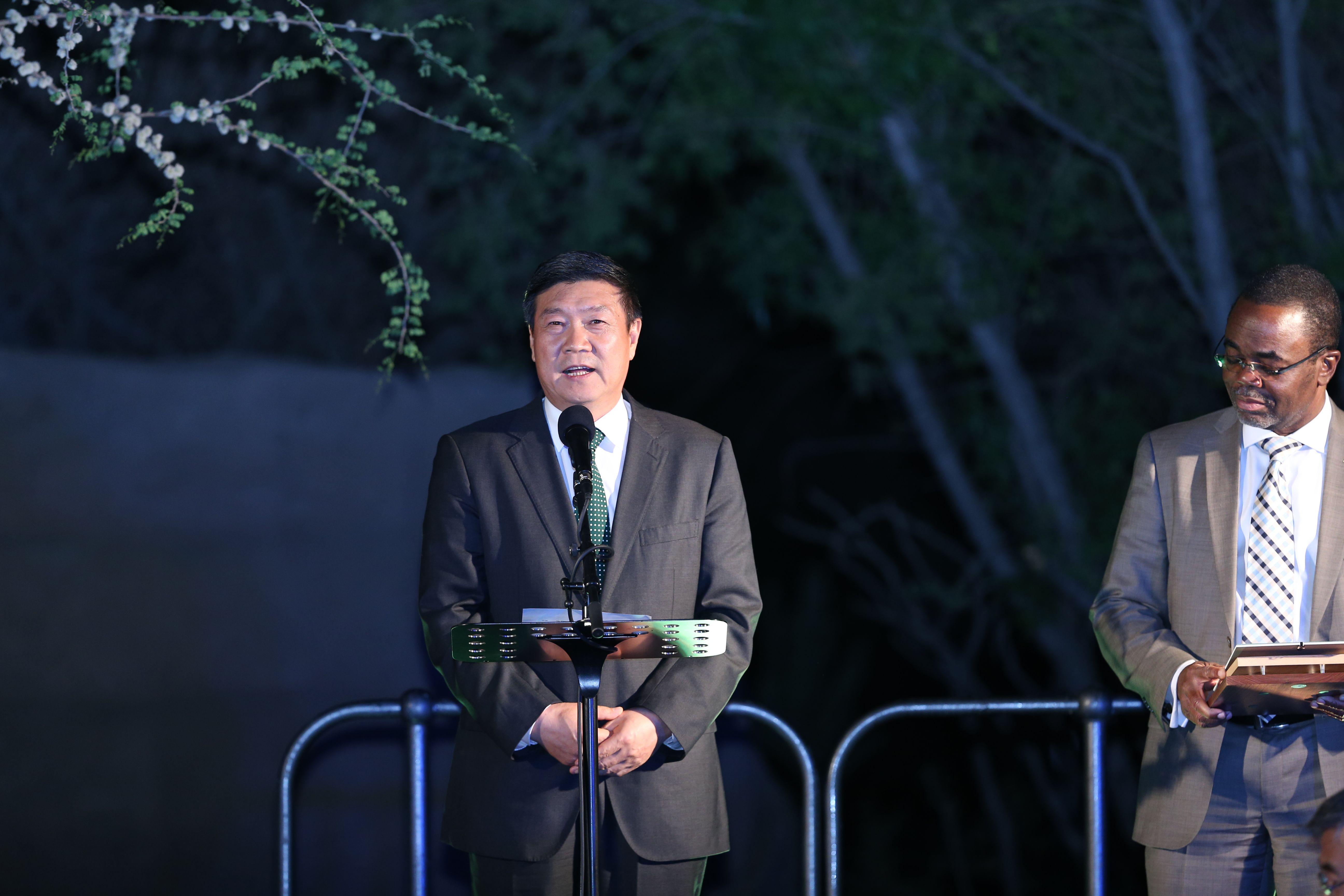 溫得和克2013年9月26日電 /美通社/ -- 全國(guó)政協(xié)常委、中國(guó)億利資源集團(tuán)董事長(zhǎng)王文彪23日在納米比亞首都溫得和克召開(kāi)的聯(lián)合國(guó)防治荒漠化公約第十一次締約方大會(huì)期間榮獲聯(lián)合國(guó)頒發(fā)的首屆“全球治沙領(lǐng)導(dǎo)者獎(jiǎng)”。在頒獎(jiǎng)儀式上,王文彪從聯(lián)合國(guó)防治荒漠化公約組織執(zhí)行秘書(shū)長(zhǎng)呂克·尼亞卡賈手中接過(guò)了沉甸甸的獎(jiǎng)牌。