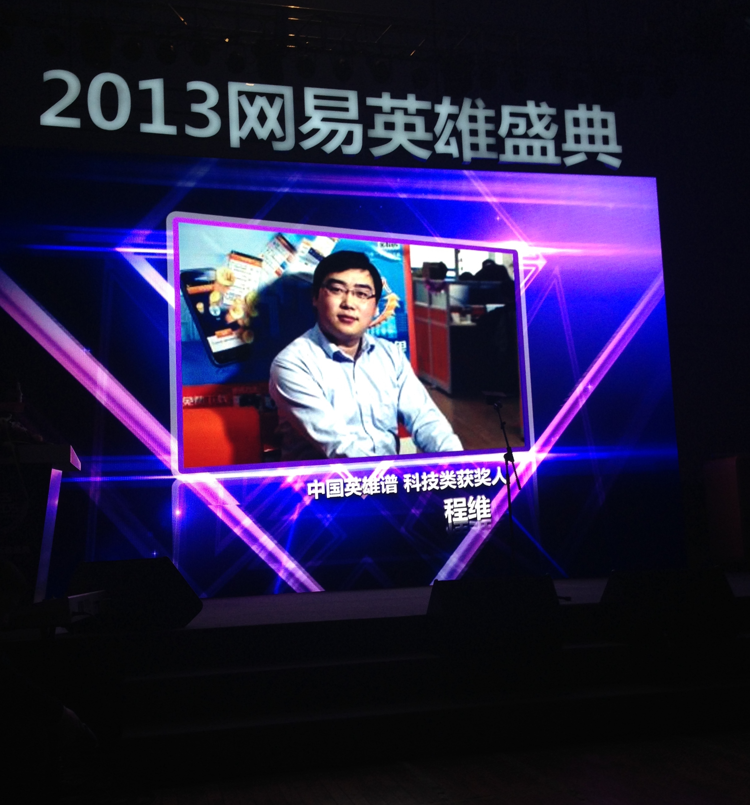 “2013網(wǎng)易英雄盛典”是由網(wǎng)易主辦的大型頒獎盛典,旨在總結(jié)過去一年在公益、環(huán)保、體育、女性等不同領(lǐng)域做出卓越貢獻的人,在盛典上發(fā)布了“2013中國英雄譜”。財經(jīng)、環(huán)保、新青年、體育、女性、公益、旅游、教育、傳媒、文化、藝術(shù)、法治、科技等13個領(lǐng)域中的52名候選人歷時近3個月的評選,最終每個領(lǐng)域有一人脫穎而出,形成“2013中國英雄譜”,嘀嘀打車CEO程維最終獲得“科技英雄獎”,該獎項其他提名者是:從牛博網(wǎng)到培訓(xùn)學(xué)校,錘子手機創(chuàng)始人羅永浩、20多年來潛心研究環(huán)境污染的健康效應(yīng),呼吁關(guān)注PM2.5的志明學(xué)者潘小川、從非典到H7N9,是醫(yī)者更是智者的著名院士終南山。