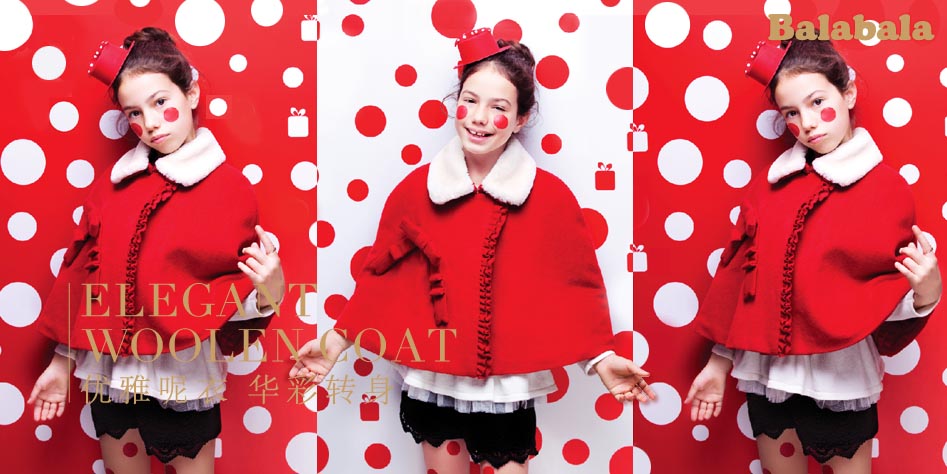 上海2013年12月2日電 /美通社/ -- 為迎接圣誕購(gòu)物季,國(guó)內(nèi)領(lǐng)先潮童服飾品牌巴拉巴拉(Balabala)發(fā)表了2013圣誕系列主題海報(bào)。主題海報(bào)以紅色和波點(diǎn)為主打色調(diào),傳達(dá)冬日暖暖溫情,烘托出圣誕奢華絢麗的節(jié)日氣氛。身著紅色披肩的小模特帶來(lái)節(jié)日的愉悅,高品質(zhì)呢衣的溫暖越發(fā)讓我們期待圣誕的到來(lái)。