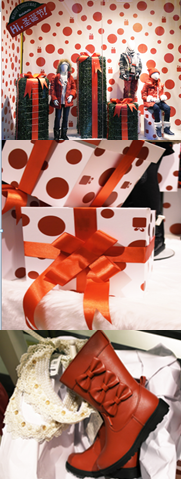 女孩的圣誕紅皮靴,男孩的優(yōu)雅呢衣和費(fèi)爾島針織毛衣,還有男孩女孩都喜歡的圣誕禮盒,各色商品精心陳列,精致漂亮又可愛(ài),處處都是歡樂(lè)的色彩。