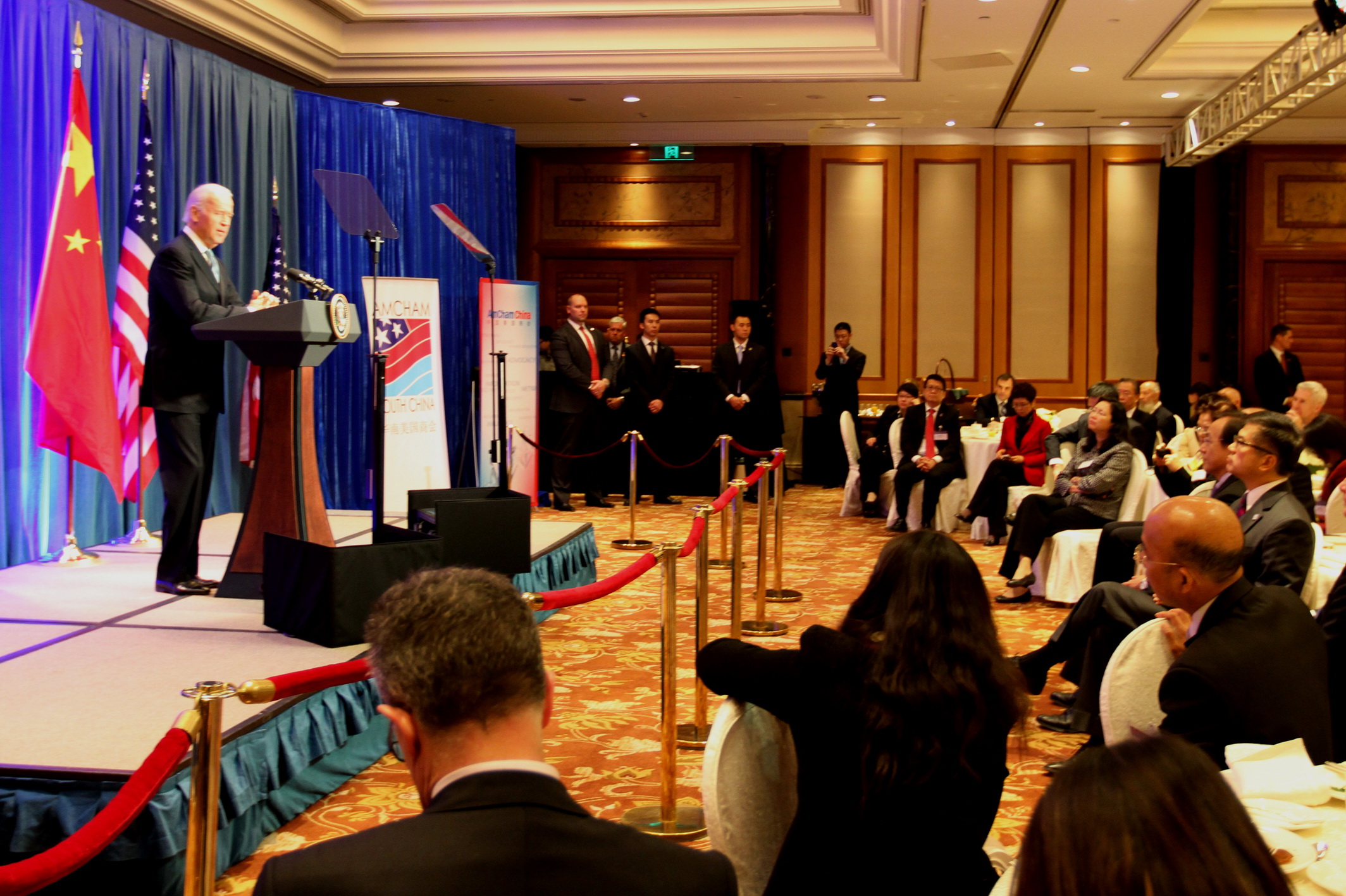 會(huì)后,拜登副總統(tǒng)對(duì)三家美國商會(huì)以及美中貿(mào)易全國委員會(huì)對(duì)美中經(jīng)貿(mào)關(guān)系作出的貢獻(xiàn)表示感謝,與此同時(shí)他指出美中經(jīng)貿(mào)關(guān)系與與會(huì)企業(yè)高層息息相關(guān),他們非常熟悉美企在華運(yùn)營(yíng)過程中存在的“機(jī)遇與障礙”。