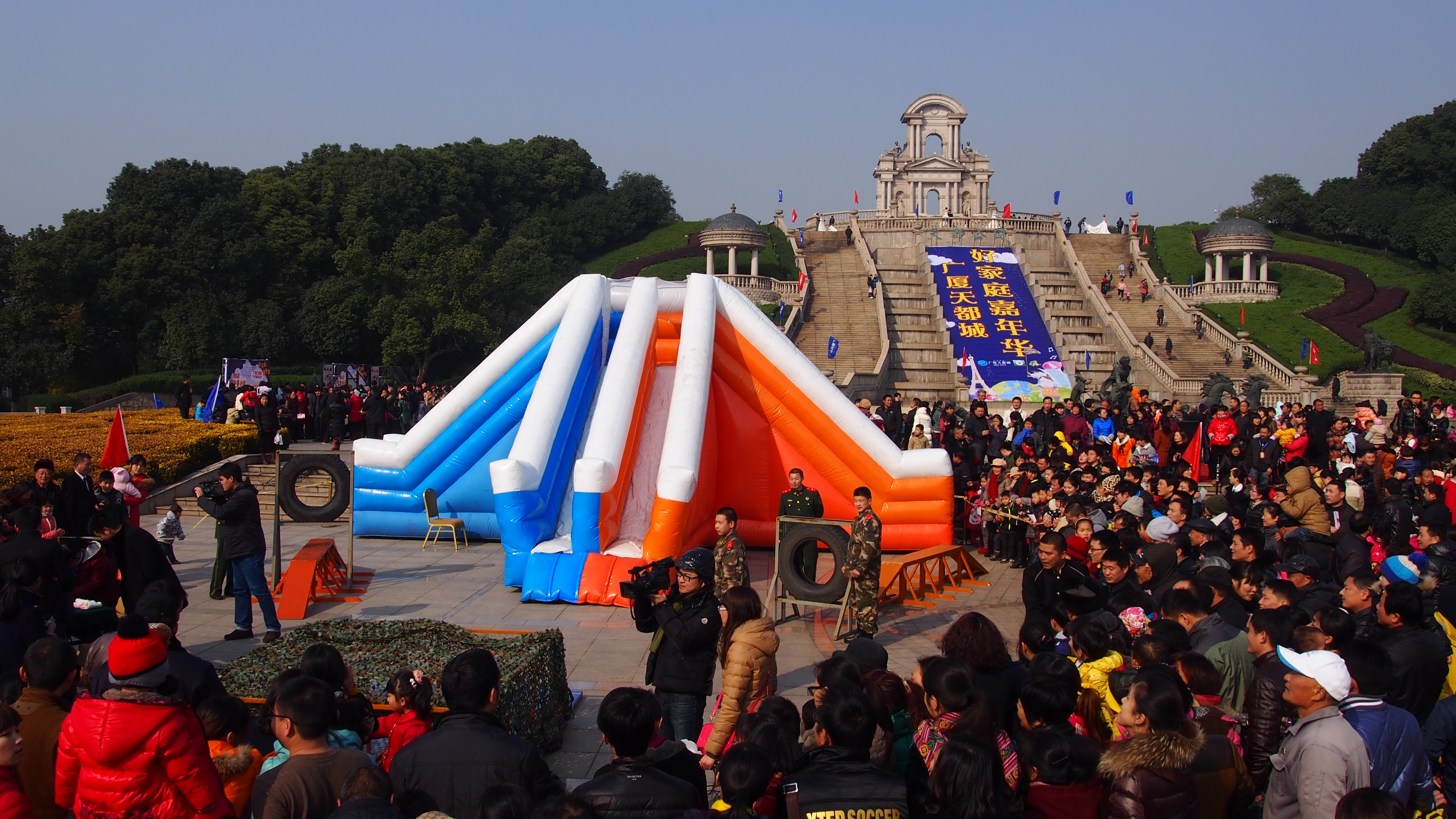 當(dāng)天下午,杭州電視臺(tái)著名主持人李悅攜老娘舅如約而至。活動(dòng)開始前2個(gè)小時(shí),就有數(shù)千家庭在寒風(fēng)中等候。當(dāng)李悅和老娘舅出場后,現(xiàn)場一度火爆到頂點(diǎn),五千余平米的天都城公園廣場水泄不通,更令廣場周邊交通全線癱瘓。
